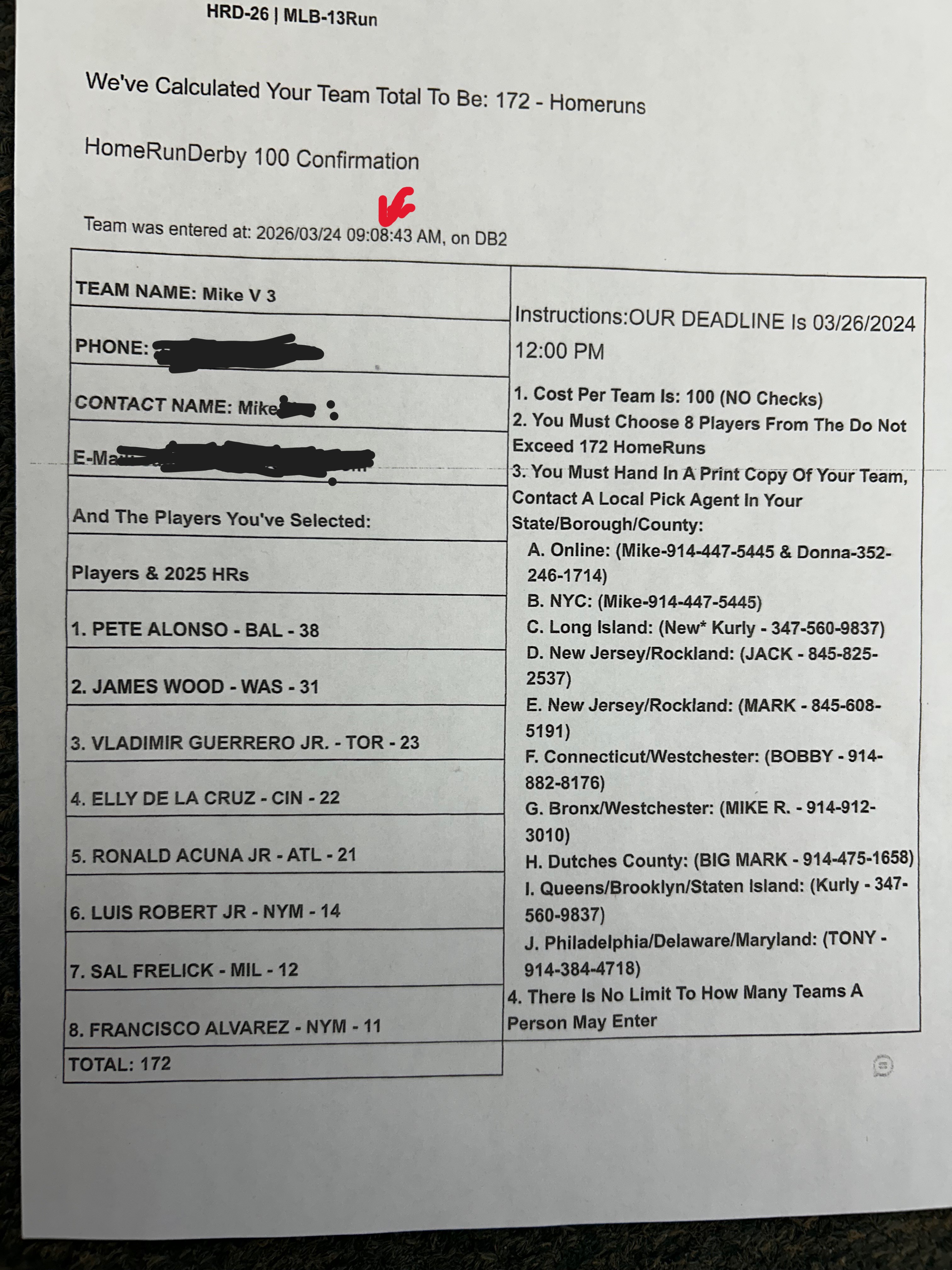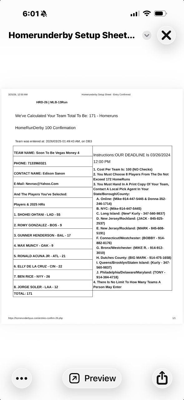 | 6 | Foofs Fence Busters | KYLE SCHWARBER - PHI - 56 | DAULTON VARSHO - TOR - 20 | DOMINIC CANZONE - SEA - 11 | BRANDON LOWE - PIT - 31 | GABRIEL MORENO - ARI - 9 | FRANCISCO ALVAREZ - NYM - 11 | JAKE BURGER - TEX - 16 | LUIS ROBERT JR - NYM - 14 |