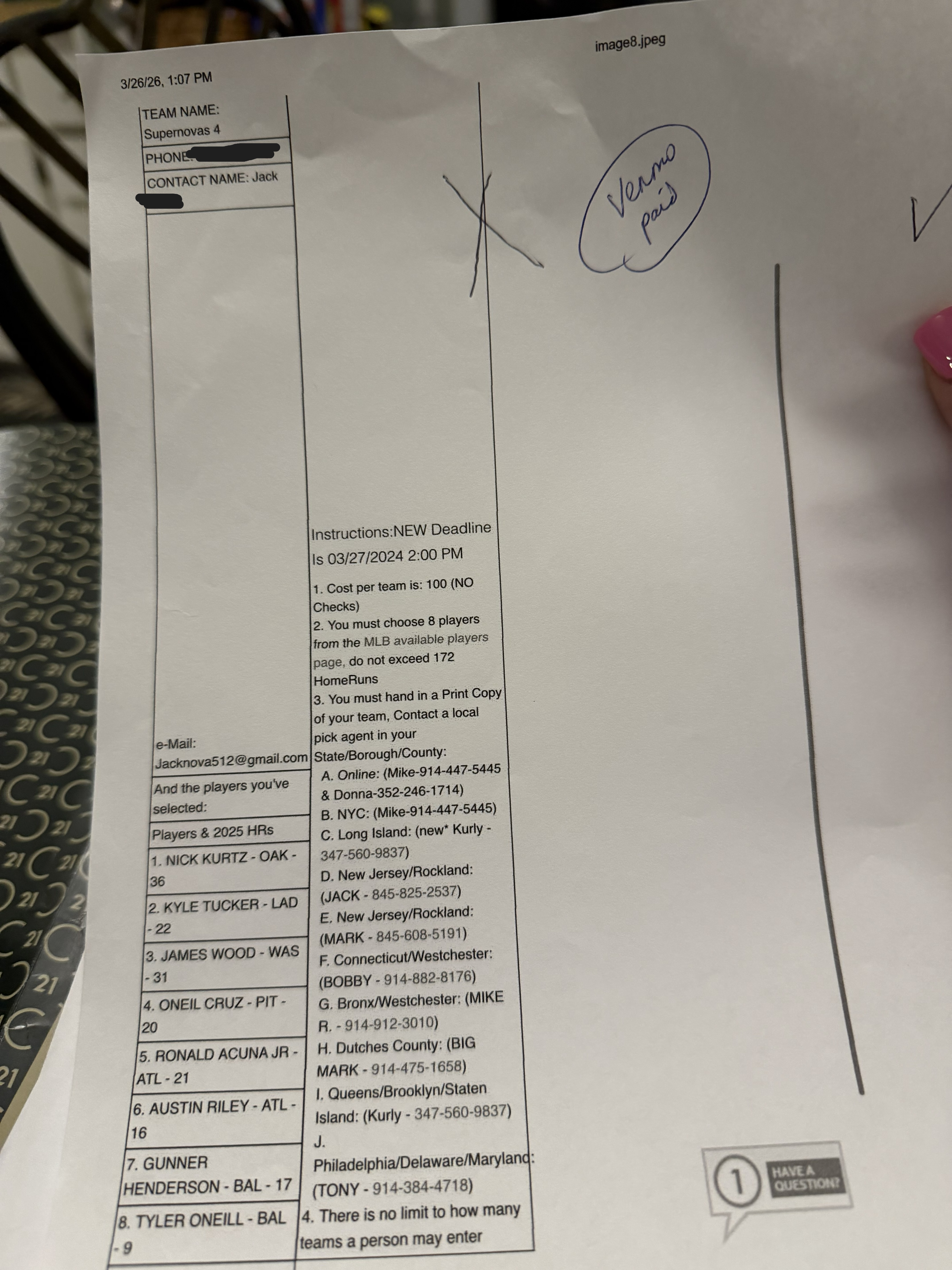 | 72 | Bambinos 2 | AARON JUDGE - NYY - 53 | RONALD ACUNA JR - ATL - 21 | GUNNER HENDERSON - BAL - 17 | AUSTIN RILEY - ATL - 16 | JAKE BURGER - TEX - 16 | EZEQUIEL TOVAR - COL - 9 | JAMES WOOD - WAS - 31 | MAX MUNCY - OAK - 9 |